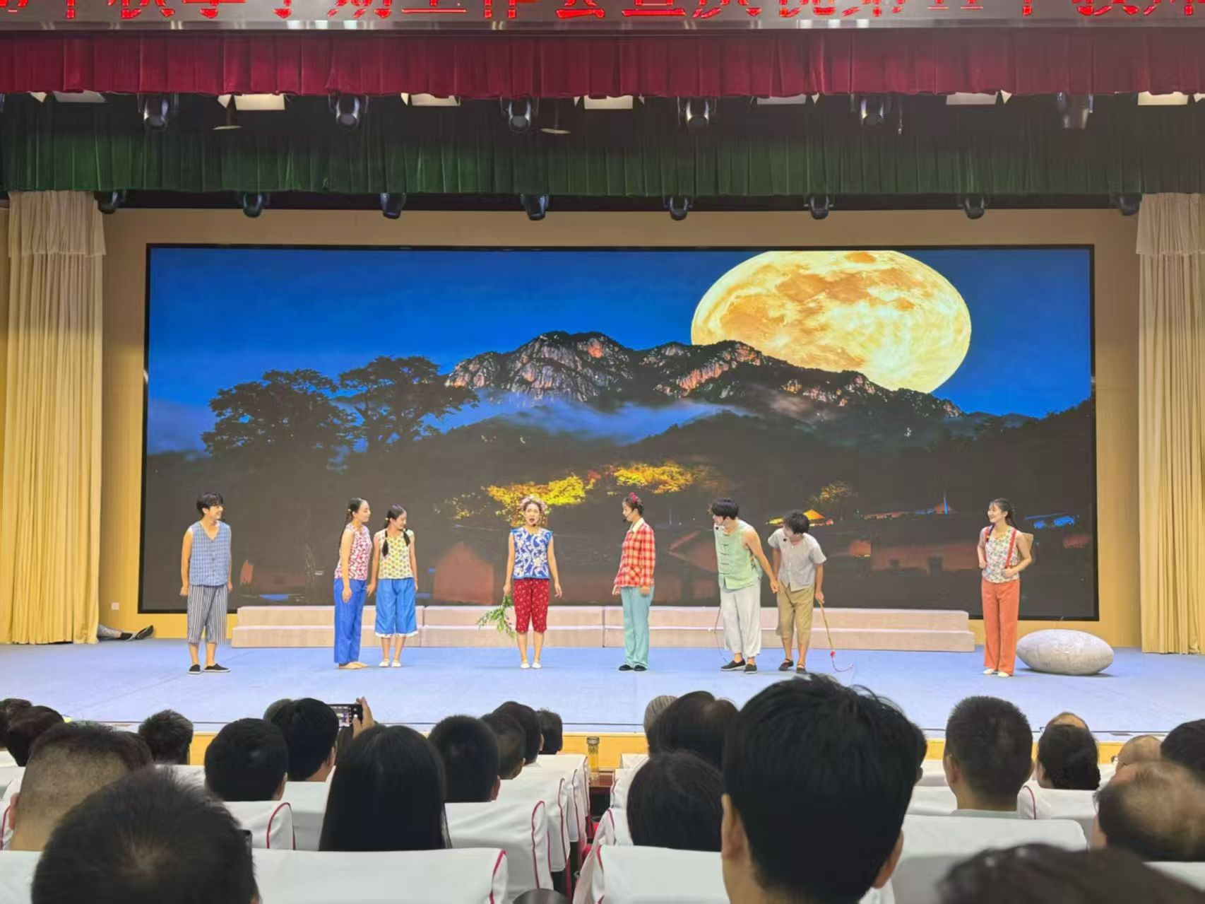 近年来商洛学院艺术学院“华优秀传统文化传承基地--商洛花鼓平台”的实践教学成果丰硕,先后编导演出的《屠夫状元》《一文钱》《疯娘》《六斤县长》等经典曲目陆续走进课堂。《月亮光光》选段“追赶星星和太阳”在第41个教师节之际作为暖场节目,获得阵阵掌声。该选段以讴歌教育工作者扎根山区、无私奉献的精神,同时展现校地合作推动传统文化传承的创新成果。