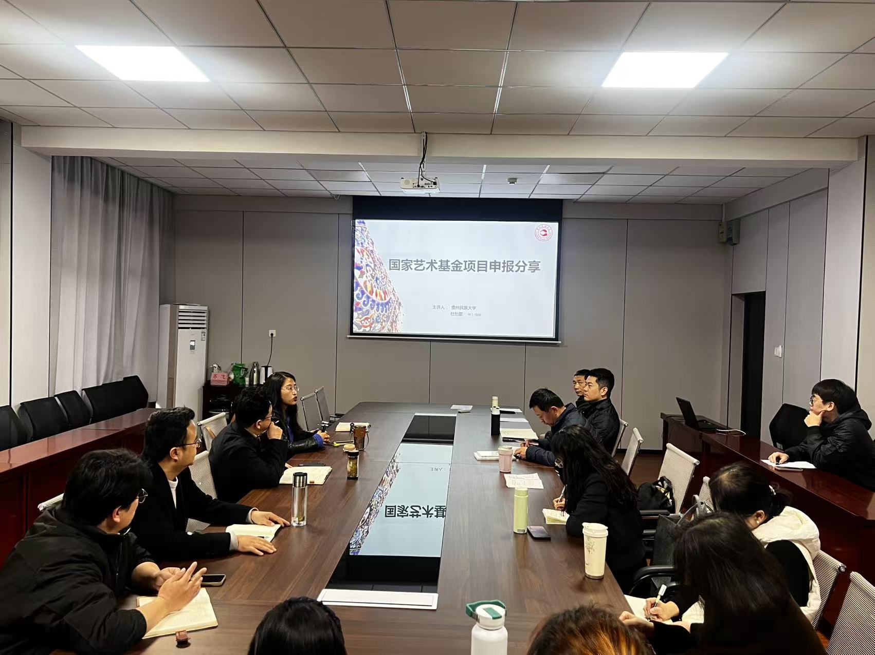 2023年11月10日下午,艺术学院举办“国家艺术基金项目申报分享及指导交流”座谈会。会议特邀贵州民族大学硕士生导师杜怡蒙教授作专题讲座,围绕国家艺术基金等高水平科研项目的申报与实施进行深入指导。会议由艺术学院院长唐曌堃主持,艺术学院高职称、高学历教师、美术专业全体教师参与研讨交流。