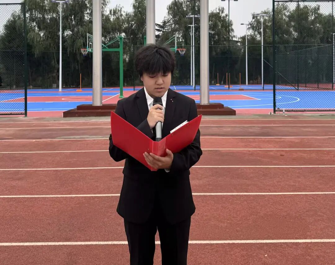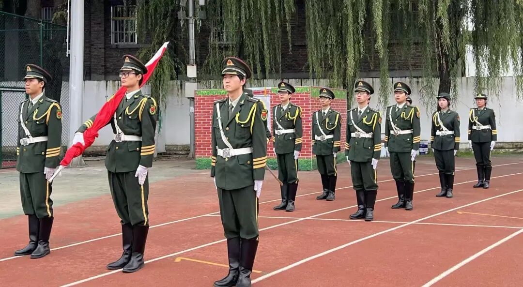 清晨的操场庄严肃穆,7时05分,国旗护卫队迈着铿锵有力的步伐护送国旗入场,全体师生肃立,现场奏响激昂的出旗乐曲。7时10分,《义勇军进行曲》响彻校园,升旗手振臂一挥,五星红旗在晨曦中冉冉升起。全体师生行注目礼,高唱国歌,歌声中饱含对祖国的无限热爱与崇高敬意。