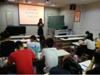 艺术学院开展班干部工作总结大会 7月1日下午,各班主要班干部在6号教学楼3楼教室,开展了本学期班干部工作总结大会。大会由学工办主任苏飞主持,各班对本学期班级工作进行了认真梳理和总结,进行交流发言。 每个班干部对本学期自己的主要工作以及具体做法作了较全面的介绍交流的同时,也总结了在工作开展过程中的一些问题、不足及失误,并提出了一些切实可行的改进措施与思路。在会议最后,苏飞老师对各班的工作进行了归纳和点评,针对存在问题,对下学期的工作提出了一些新要求。他表示,通过这种会议方式,目的、目标是让各班班委能够增进工作认知,推动班级工作的相互交流、相互学习、相互借鉴,进一步提升和增强班干部的班级工作能力及服务水平,推进艺术学院学生工作的更好开展。