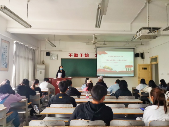 2021年4月14日下午,艺术学院学生第一党支部在1号楼605教室召开“讲述先进事迹,传承红色精神”主题党史学习教育座谈会,支部书记杜璐老师主持会议,支部全体党员参加。