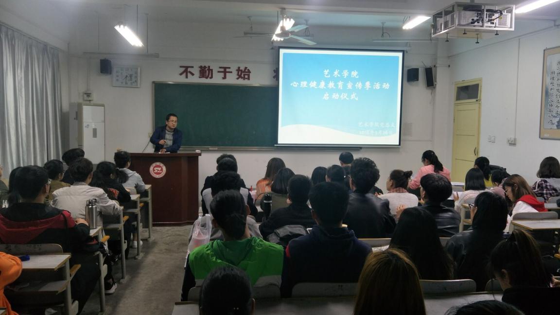 2018年3月36日,艺术学院在1号教学楼605教师举办了心理健康教育宣传活动启动仪式。艺术学院党总支书记黄新春、学工办主任苏飞、全体辅导员以及艺术学院学生代表参加了仪式。
