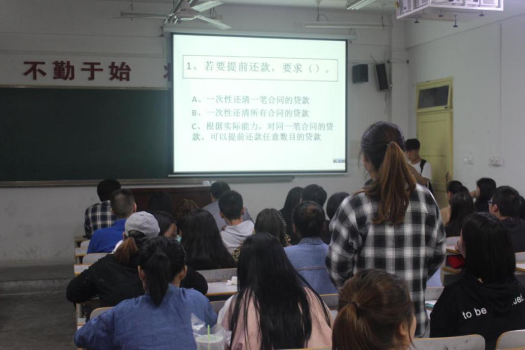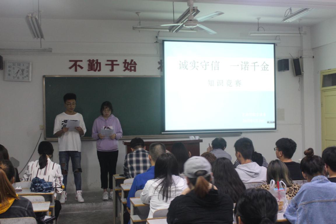 为促进学生了解国家生源地助学贷款及其他资助政策,促使学生树立诚信观念、增强法律意识,及时履行国家生源地助学贷款合同,有效地将诚信内化为自身修养并落实在实际生活中。2019年5月16日晚七点半,艺术学院美术系在1-605教室举办“诚实守信,一诺千金”知识竞赛活动,美术系全体助学贷款同学、全体辅导员以及党总支书记黄新春老师参加此次活动。
