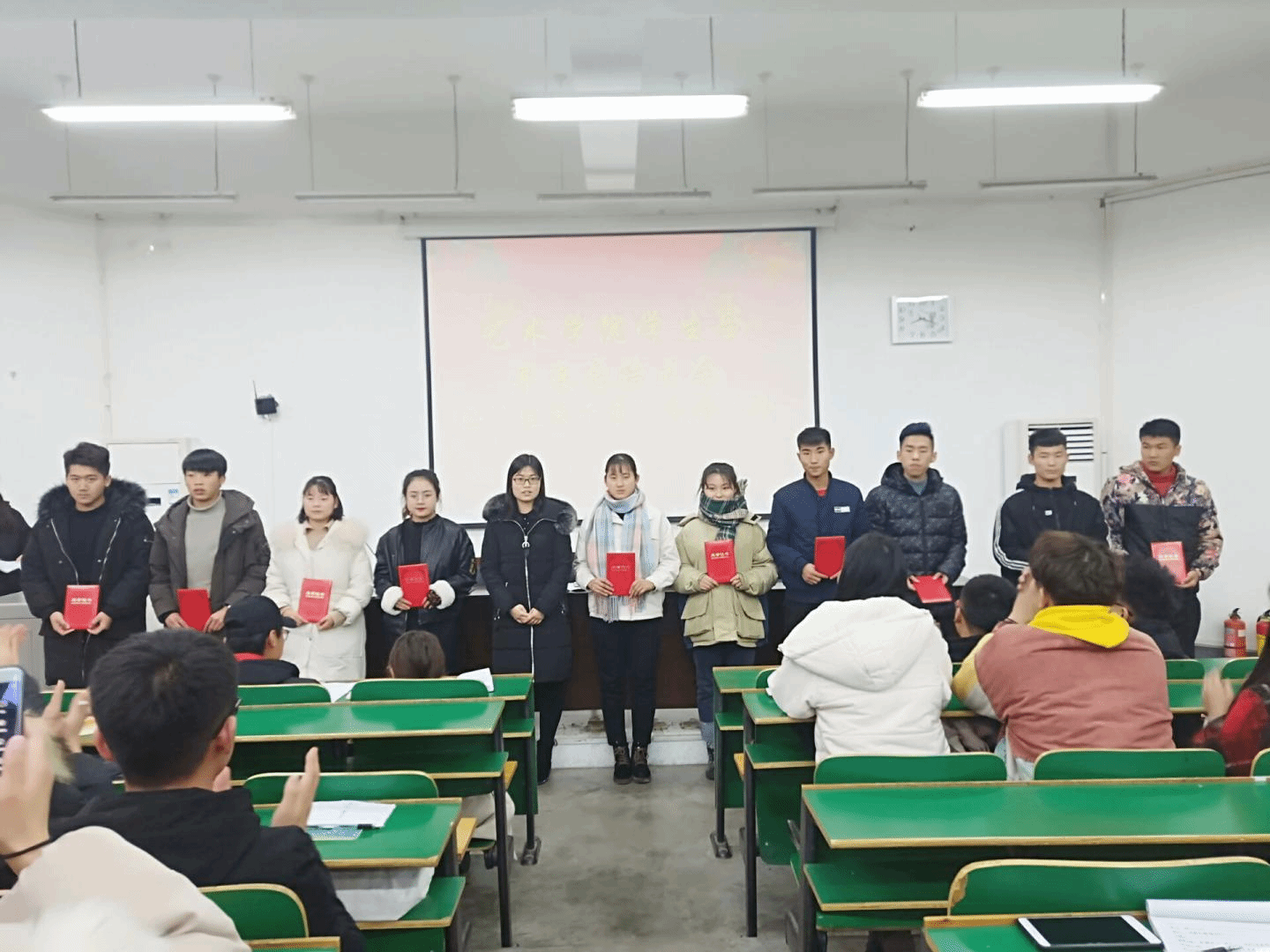 2018年12月26日晚上八点在报告厅一举行艺术学院学生会年度总结暨“优秀干事”表彰大会。参加本次会议的有艺术学院党总支书记黄新春老师,团总支书记任楠老师以及学生会全体成员。本次会议由学生会主席杨虹主持。