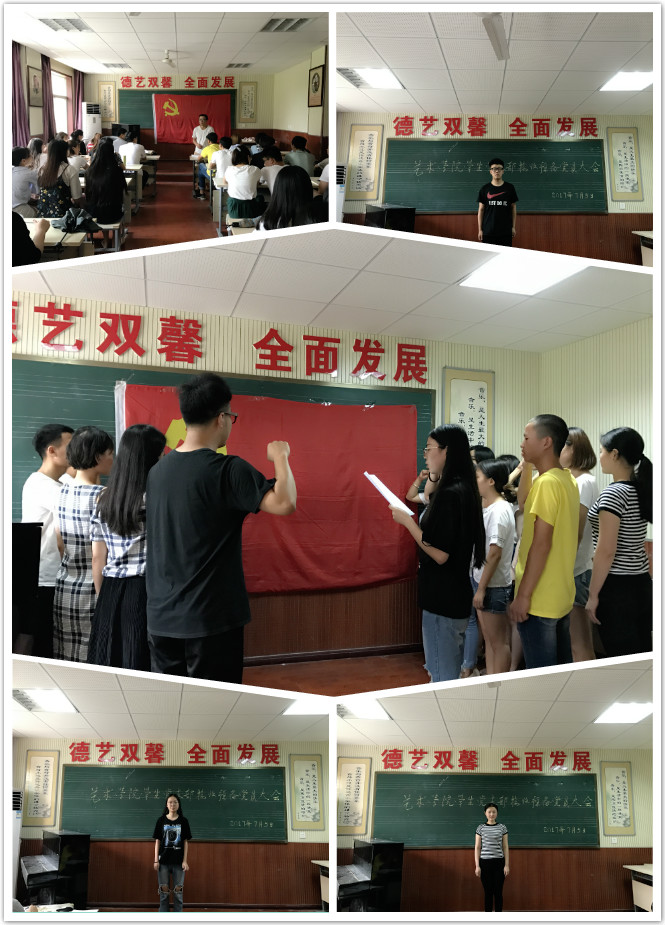 2017年7月5日,艺术学院学生第一、第二党支部在音乐楼201教室召开接收预备党员大会,艺术学院全体学生党员同志及20名拟转为预备党员的同志参加本次大会,大会由学生第一党支部书记张双奇老师主持。部分群众代表列席本次会议。
