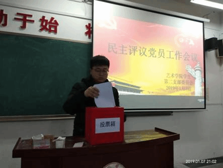 根据《中共商洛学院委员会关于做好2018年度民主评议党员工作的通知》精神,在艺术学院党总支的领导下,艺术学院学生第二党支部认真学习党的十九大精神和习近平新时代中国特色社会主义思想,学习党章党规,学习上级党组织有关文件,并于2019年1月3日晚集中学习了与民主评议党员有关的党内规定。