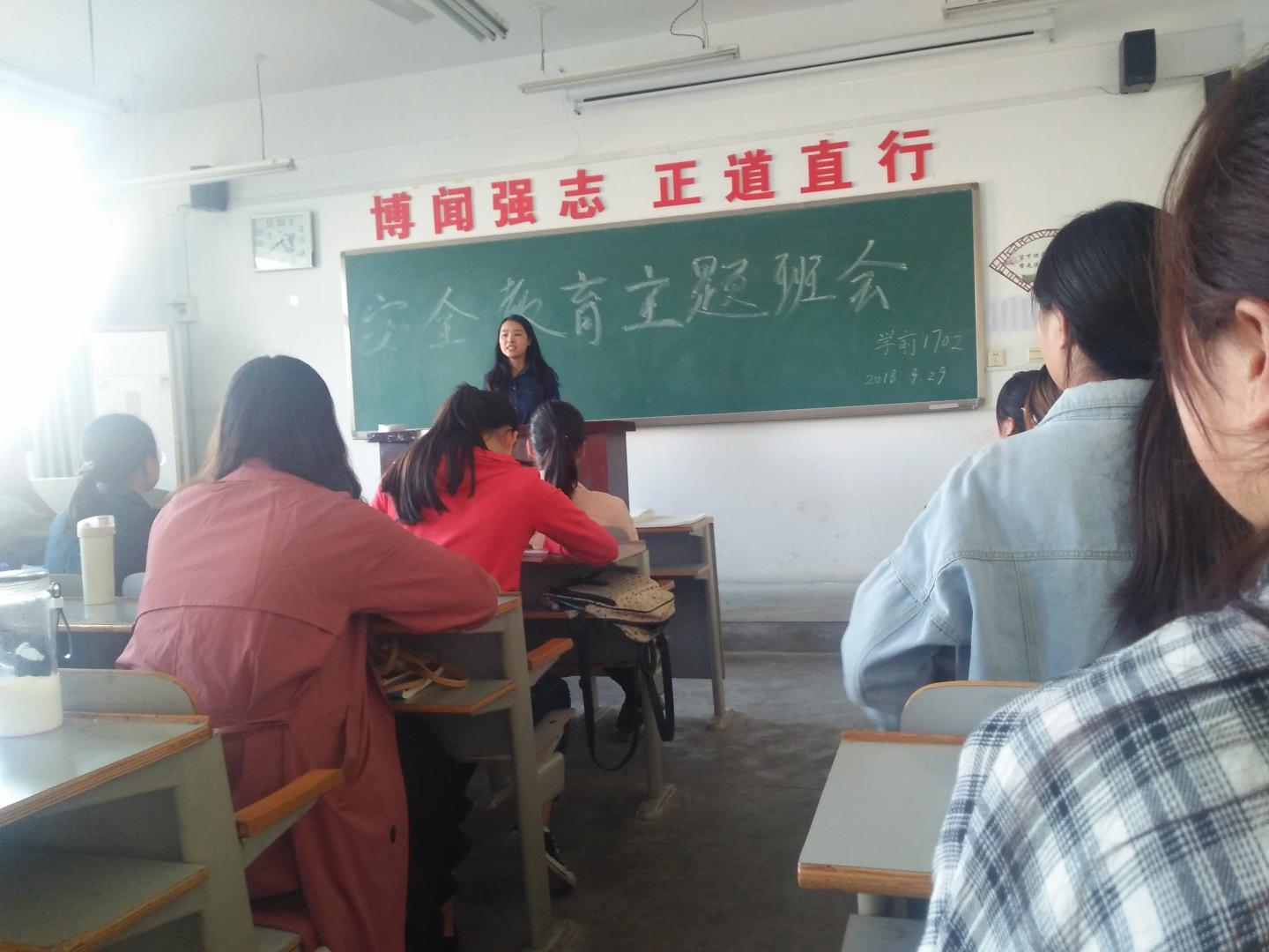 在国庆假期来临之际,为增强大家的安全防范能力,全面普及安全教育知识,学前教育1702班在9月29号下午于1号楼603教室召开了以“安全教育”为主题的班会。